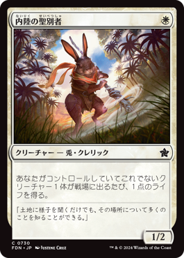 白緑ウサギ カードリスト 2025.07.102026.02.19 《クリーチャー》4 内陸の聖別者4 脚当ての補充兵4 渓間の冒険呼び4 穴くら守りの導師4 腕利きの射手、フィニアス《インスタント》4 空中ブースト《ソーサリー》4 飛び込め2 巣ごもりの季節《アーティファクト》3親族旗 《エンチャント》4 幽霊による庇護《土地》6 平地2 立藤村2 森4 ハッシュウッドの境界1 草萌ゆる玄関4 低木林地2 不穏な大草原2 魂の洞窟